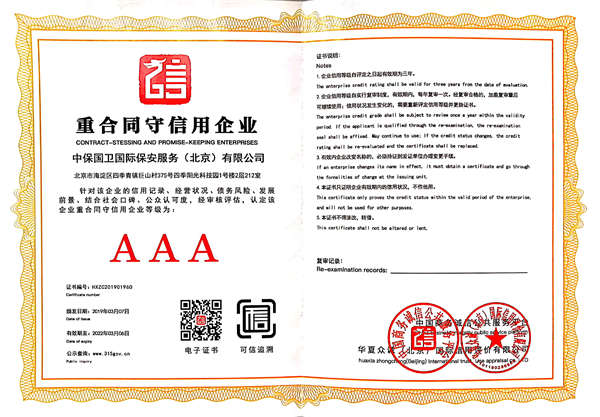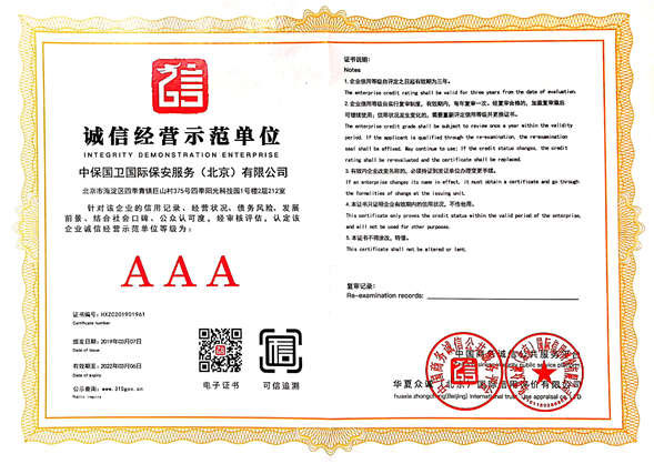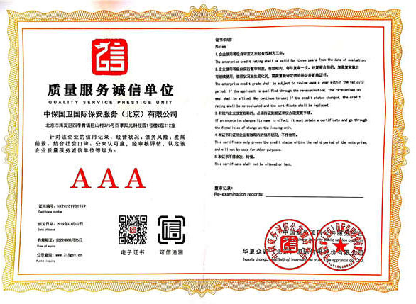 中保國衛(wèi)國際保安服務(wù)(北京)有限公司,屬中保國衛(wèi)集團(tuán)旗下子公司。能全方位的為大型客戶提供優(yōu)質(zhì)的安保、押運(yùn)服務(wù),是集人防和技防于一體的新型正規(guī)化綜合安保押運(yùn)服務(wù)企業(yè),提供人防、物防、技防、聯(lián)網(wǎng)報(bào)*、非武裝押運(yùn)等安防相關(guān)的一站式服務(wù)。 公司在國內(nèi)多省設(shè)立有分公司及分支機(jī)構(gòu),著重提升安全押運(yùn)、智能技術(shù)押運(yùn)及安全技術(shù)防范相關(guān)的服務(wù),業(yè)務(wù)范圍覆蓋全國一、二線城市、港澳地區(qū)以及海外地區(qū)。安保方面主要為政府機(jī)構(gòu)、金融機(jī)構(gòu)、企事業(yè)單位、醫(yī)療衛(wèi)生、高等院校、工業(yè)園區(qū)、大型商場(chǎng)、高檔住宅、智能商務(wù)樓、大型活動(dòng)提供門衛(wèi)、守護(hù)、巡邏、押運(yùn)(非武裝)、安全檢查、保安特勤、私人護(hù)衛(wèi)、消防中控、安全技術(shù)防范、遠(yuǎn)洋護(hù)航等全方位服務(wù),同時(shí)面向國際市場(chǎng),為中資企業(yè)在“一帶一路”沿線國家投資提供境外安保服務(wù)。 >> 更多內(nèi)容 |